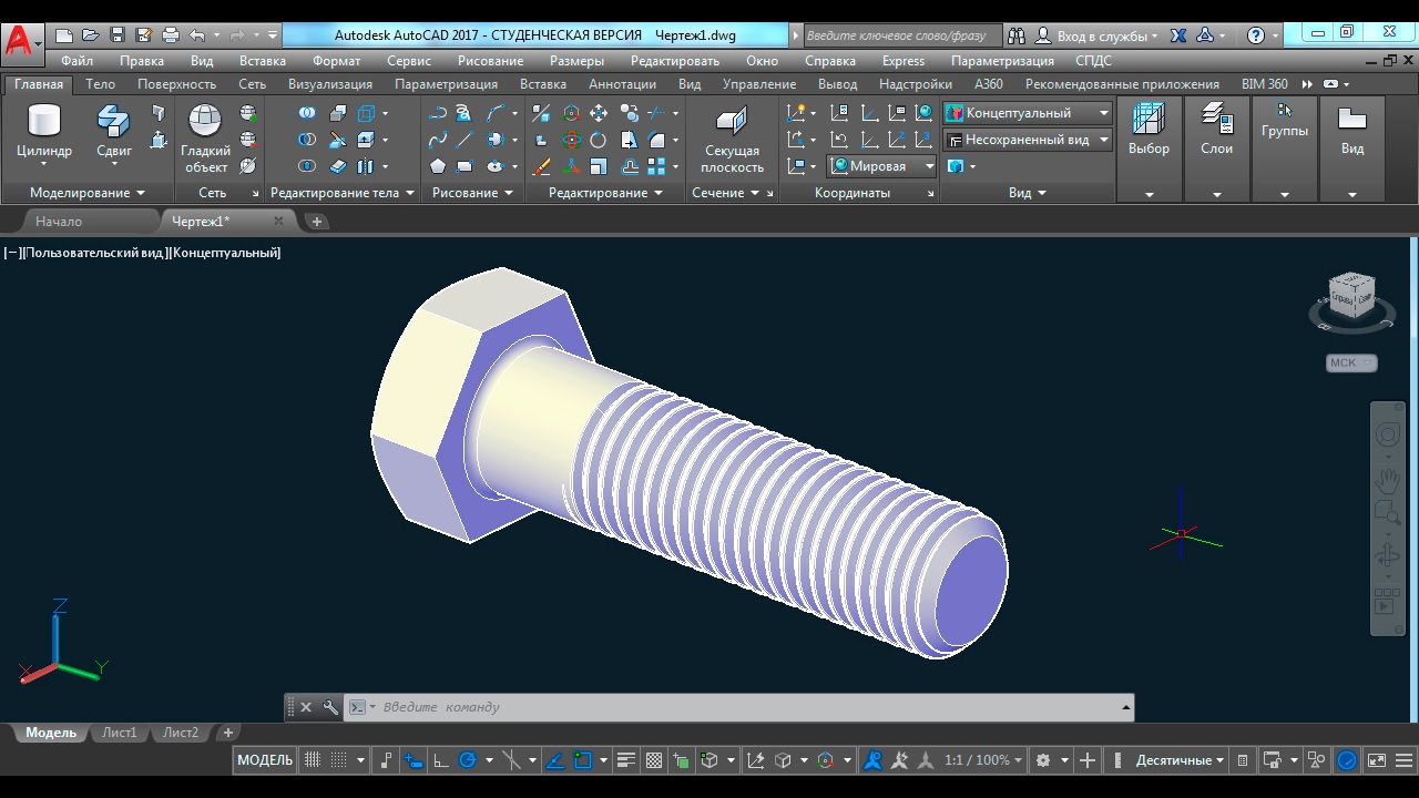 Программное обеспечение AutoCAD имеет несколько видов 3D-моделирования. Первый - эскизное моделирование, при котором трехмерная структура проектируется и используется в качестве эталонной структуры, к которой применяются различные модели и модификации. Второе - это моделирование твердого тела, где пользователь может экспериментировать с различными массами. Моделирование поверхности обеспечивает точный контроль изогнутых поверхностей. При моделировании сетки пользователь может моделировать формы по своему усмотрению и наносить сгибы либо сглаживание. 3D-модели можно экспортировать в формат STL, для дальнейшей отправки и печати объекта на 3D-принтере. Однако следует иметь в виду, что AutoCAD не был специально разработан для аддитивного производства и, соответственно, существуют приложения, которые в некоторой степени более удобны для пользователя. Из Autodesk можно перейти на TinkerCAD (для новичков) и на Fusion 360 либо Netfabb (для более продвинутых пользователей).